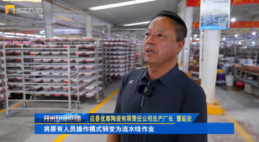 应县优尊陶瓷有限责任公司生产厂长曹起佐说:“对生产线进行智能化升级改造,将原有人员操作模式转变为流水线作业,并引入机器人承担部分高强度工作。这一举措既有效降低了生产成本,又显著减少了工人面临的劳动风险。同时,我们持续优化产品的配方,产品的白度从75提升至80以上,亮度、规整度等指标也大幅改善。目前,产品整体的质量合格率已从60%多跃升至90%以上,产量也从原来的日产9万件提升至17万件。”